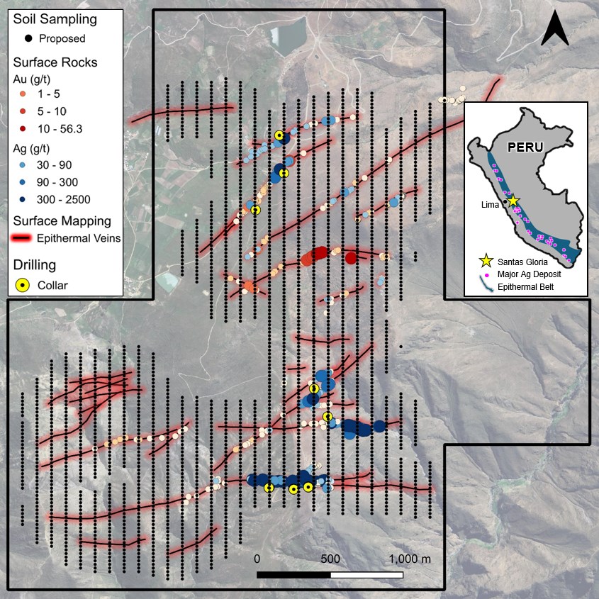 First Andes plans systematic exploration of its Santas Gloria silver project in Peru, using remote sensing, soil sampling, and geophysics to identify drill targets.