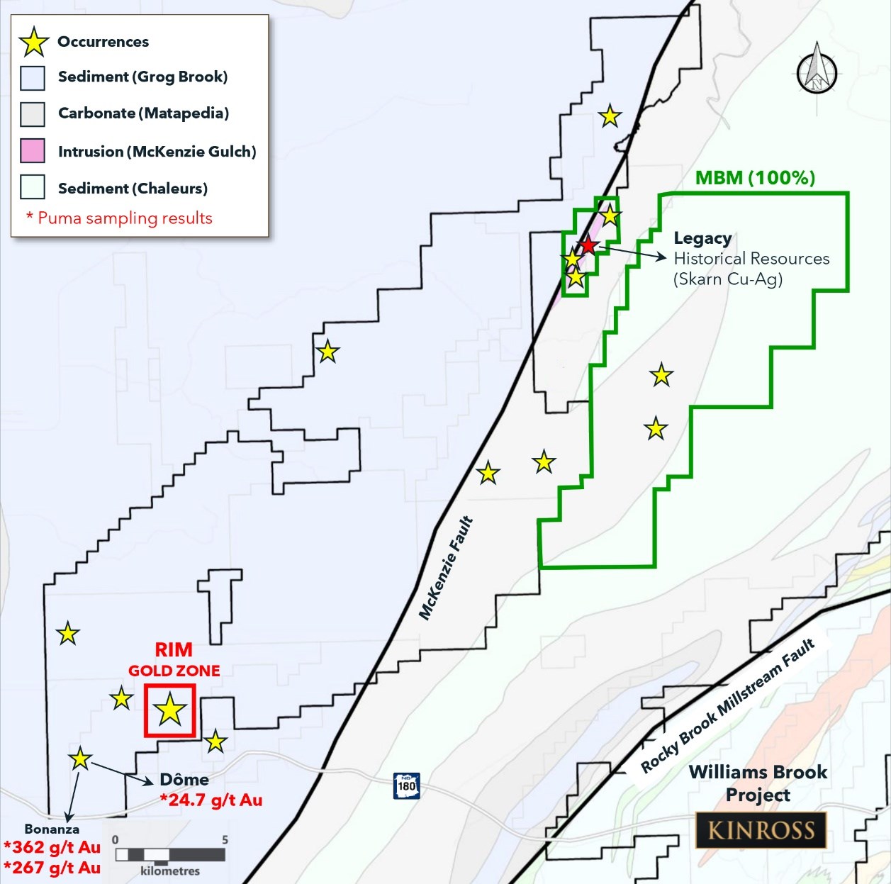 Rimouski, Québec--(Newsfile Corp. - November 11, 2025) - Puma Exploration Inc. (TSXV: PUMA) (OTCQB: PUMXF) (the "Company" or "Puma") is pleased to announce that its sampling program at its McKenzie Gold Project in Northern New Brunswick (Figure 1) continued to return impressive gold grades including 126.96 g/t Au, 125.66 g/t Au, 84.41 g/t Au, 79.69 g/t Au* to add to the high-grade results of the 2024 sampling (see January 16, 2025, News Release). An inaugural 2,500 m drilling program to test the high-grade RIM Gold Zone is set to begin this week. *The reader is cautioned that grab samples are selective by nature and may not represent the true metal content of the mineralized zone.